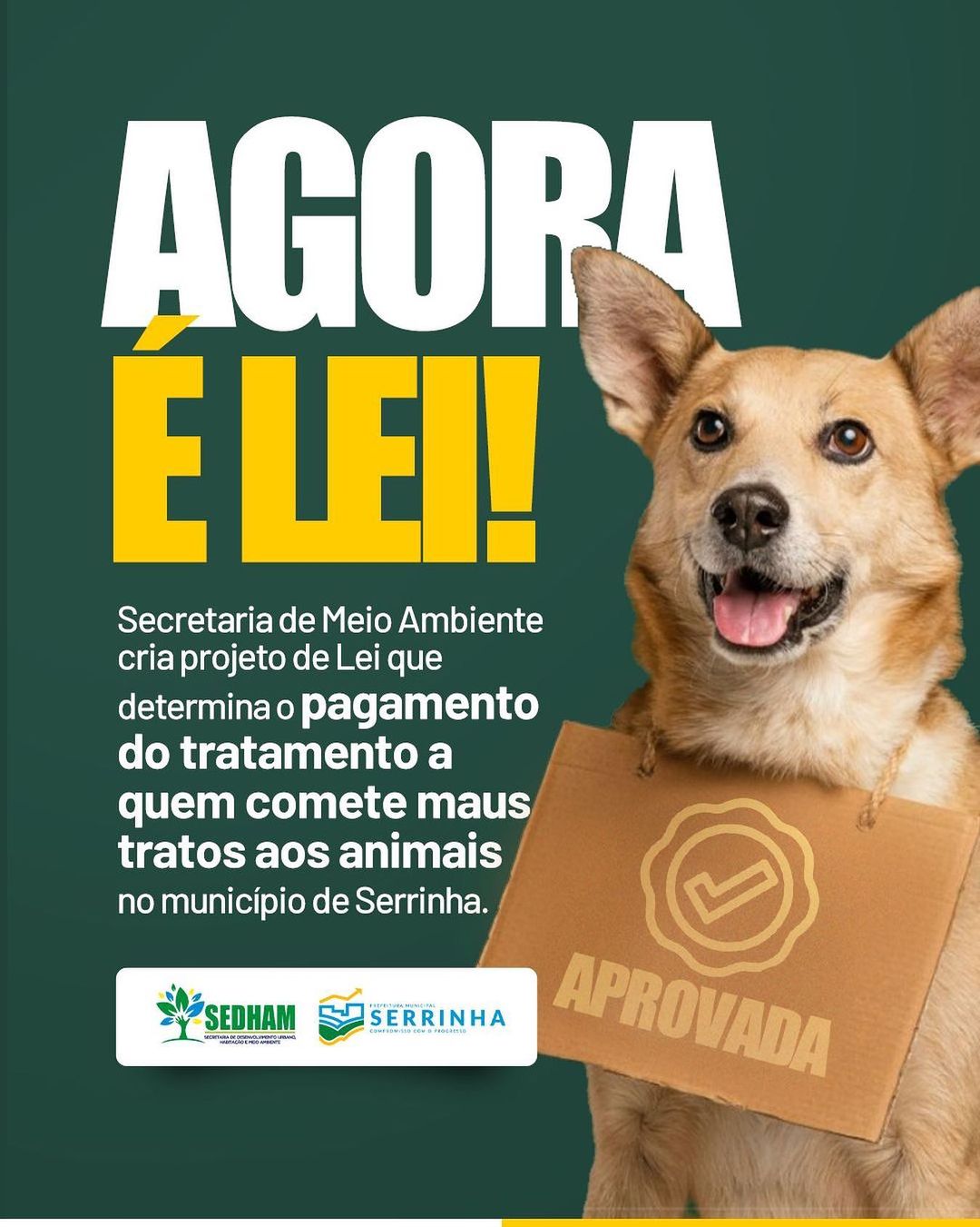 Secretaria de Meio Ambiente cria projeto de Lei que determina o pagamento do tratamento a quem comete maus-tratos aos animais no Município de Serrinha.